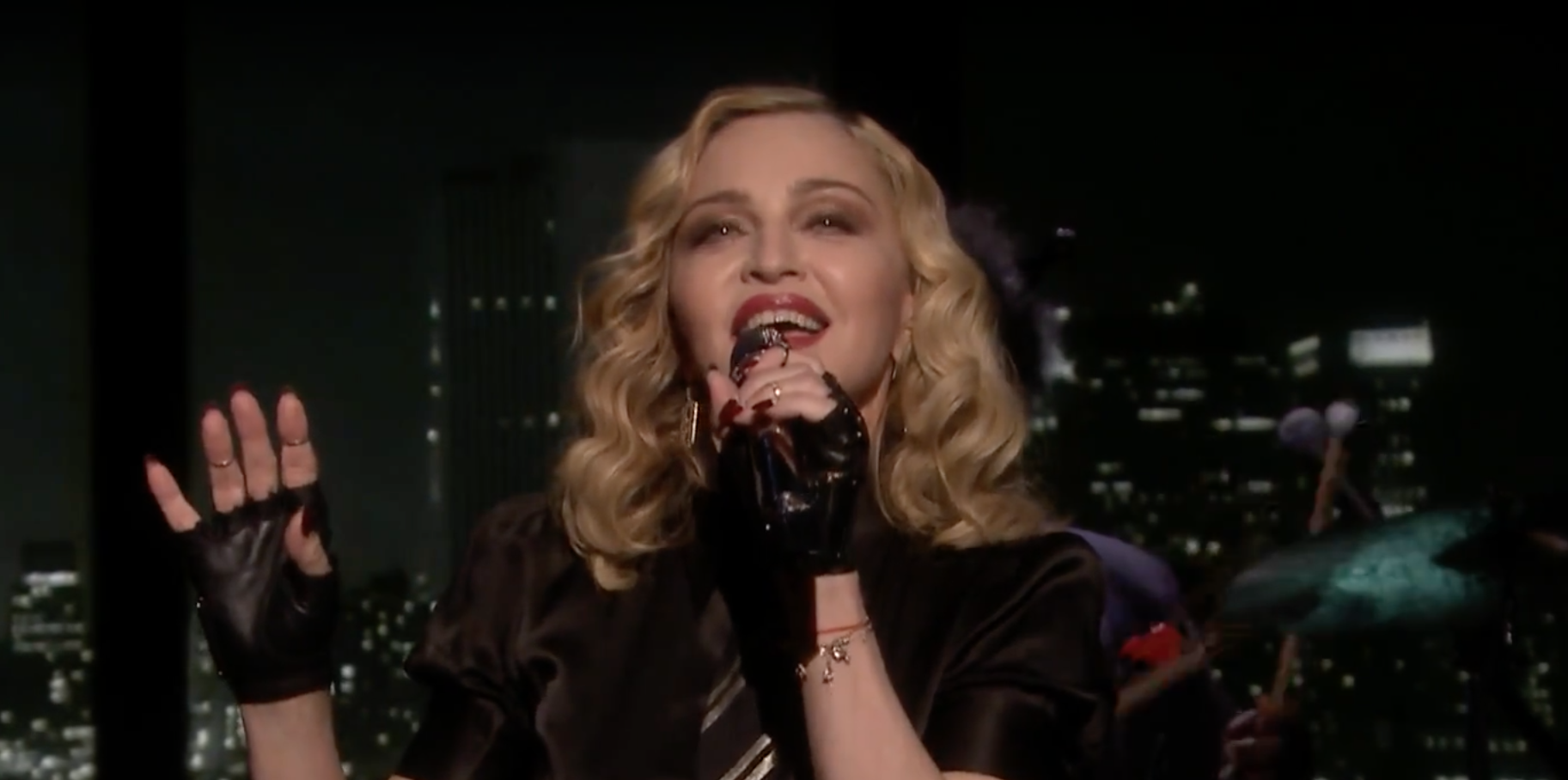 Invitée musicale du « Tonight Show starring Jimmy Fallon », Madonna a interprété en direct live son ancien tube BORDERLINE…