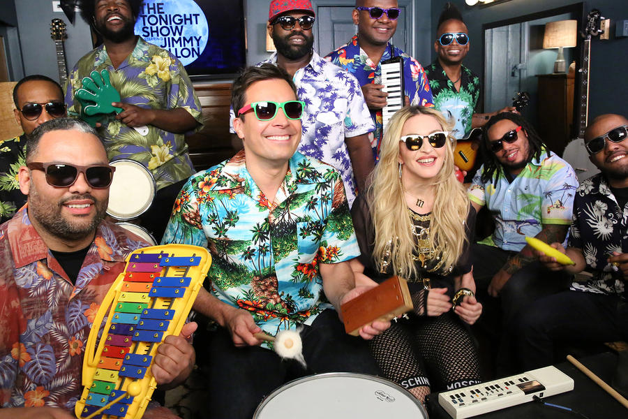 Nous avons hâte de voir son apparition… en attendant la suite sur MADONNA SPIRIT, voici quelques photos de ses récentes apparitions aux côtés de Jimmy Fallon !