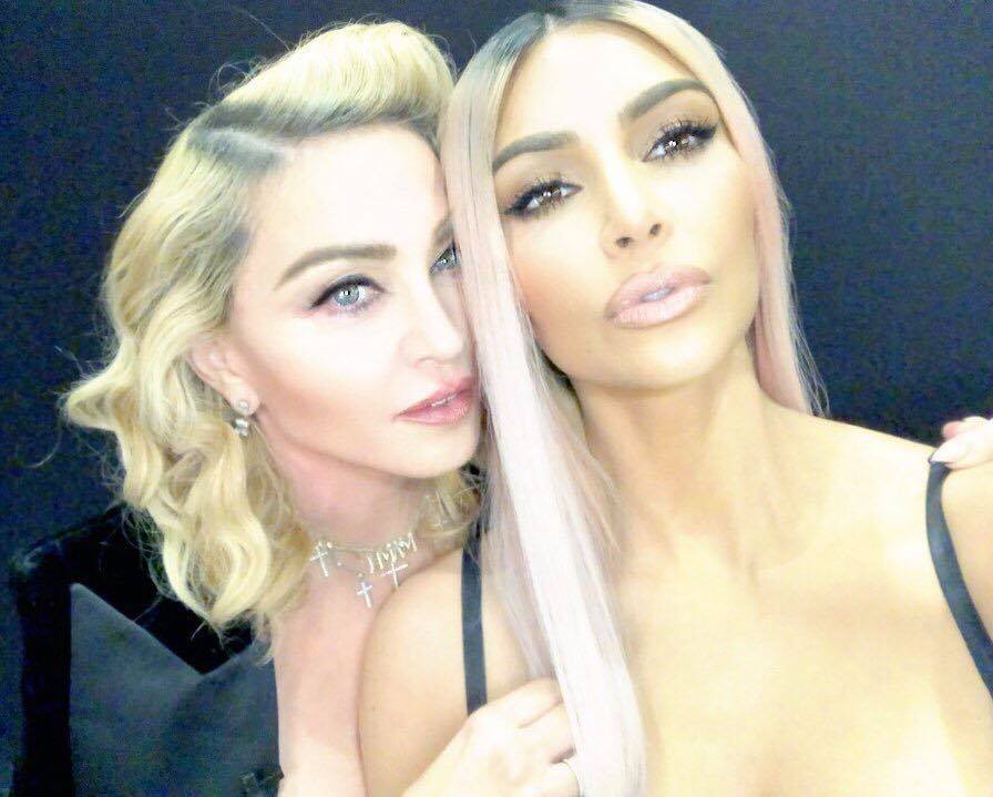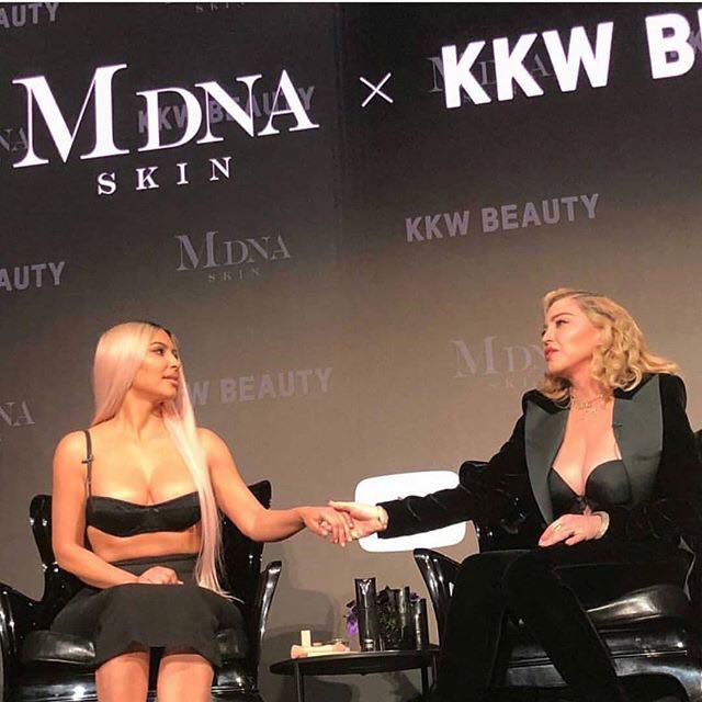 Accompagnée de Kim Kardashian, Madonna a joué les vendeuses avec les fans et curieux massés en foule !
