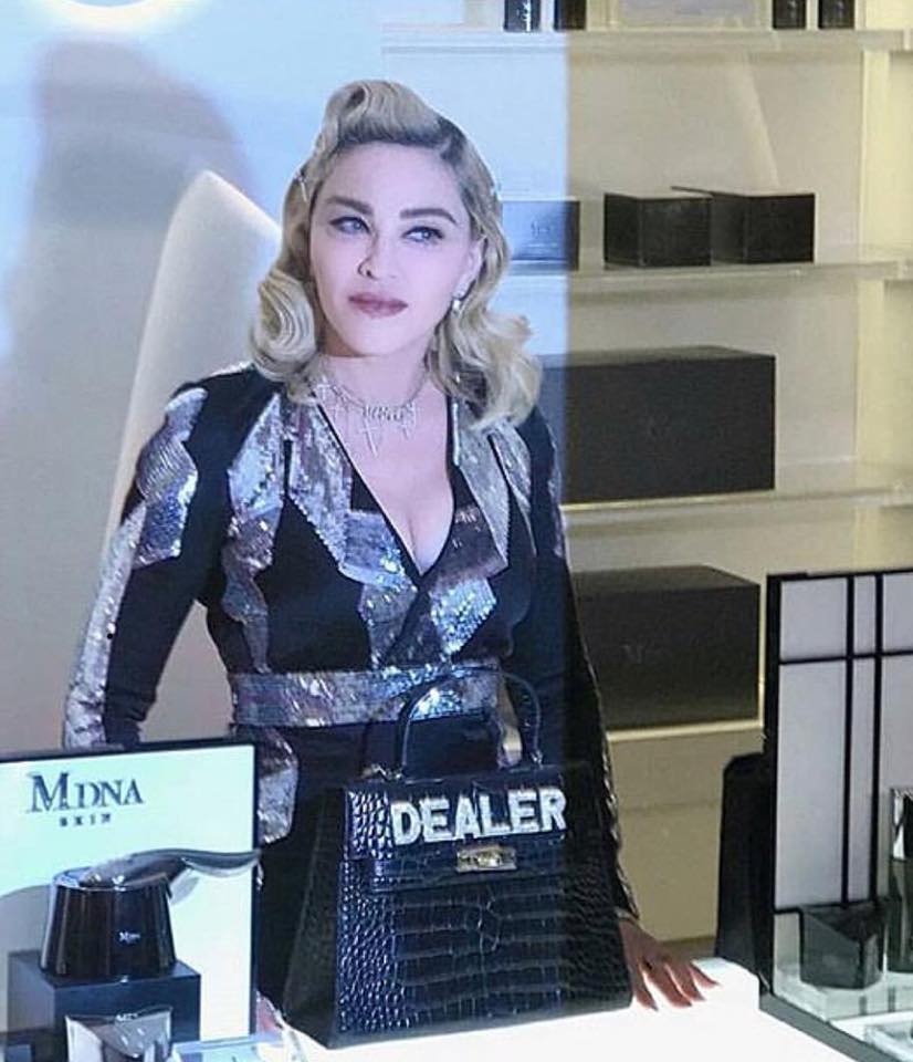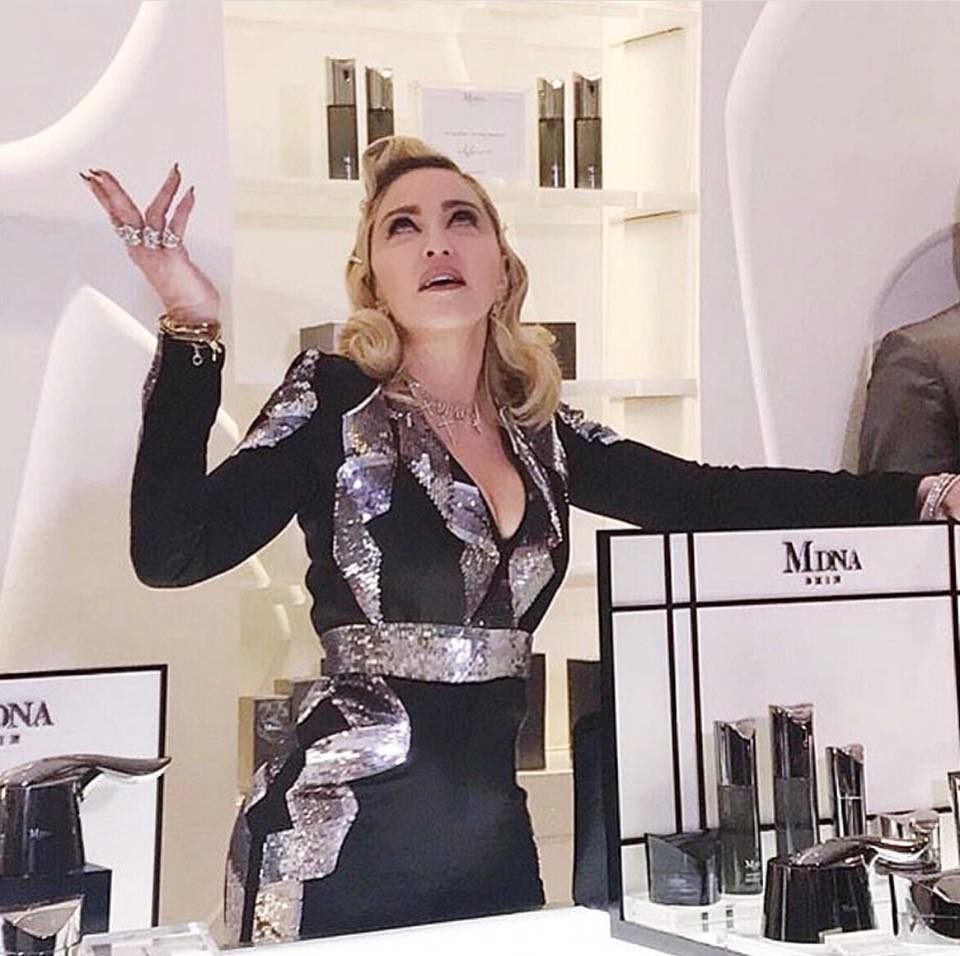 Toujours en pleine promotion de sa ligne cosmétique MDNA SKIN, Madonna s’est rendue au magasin BARNEY’S, qui vend sa gamme de produits en exclusivité aux USA.