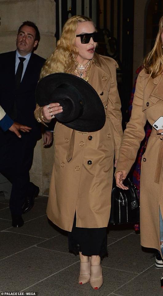 La Reine de la pop, aperçue à la sortie du Ritz toute de Burberry vêtue, est restée plutôt incognito dans le théâtre, assistant uniquement à la première partie du show !