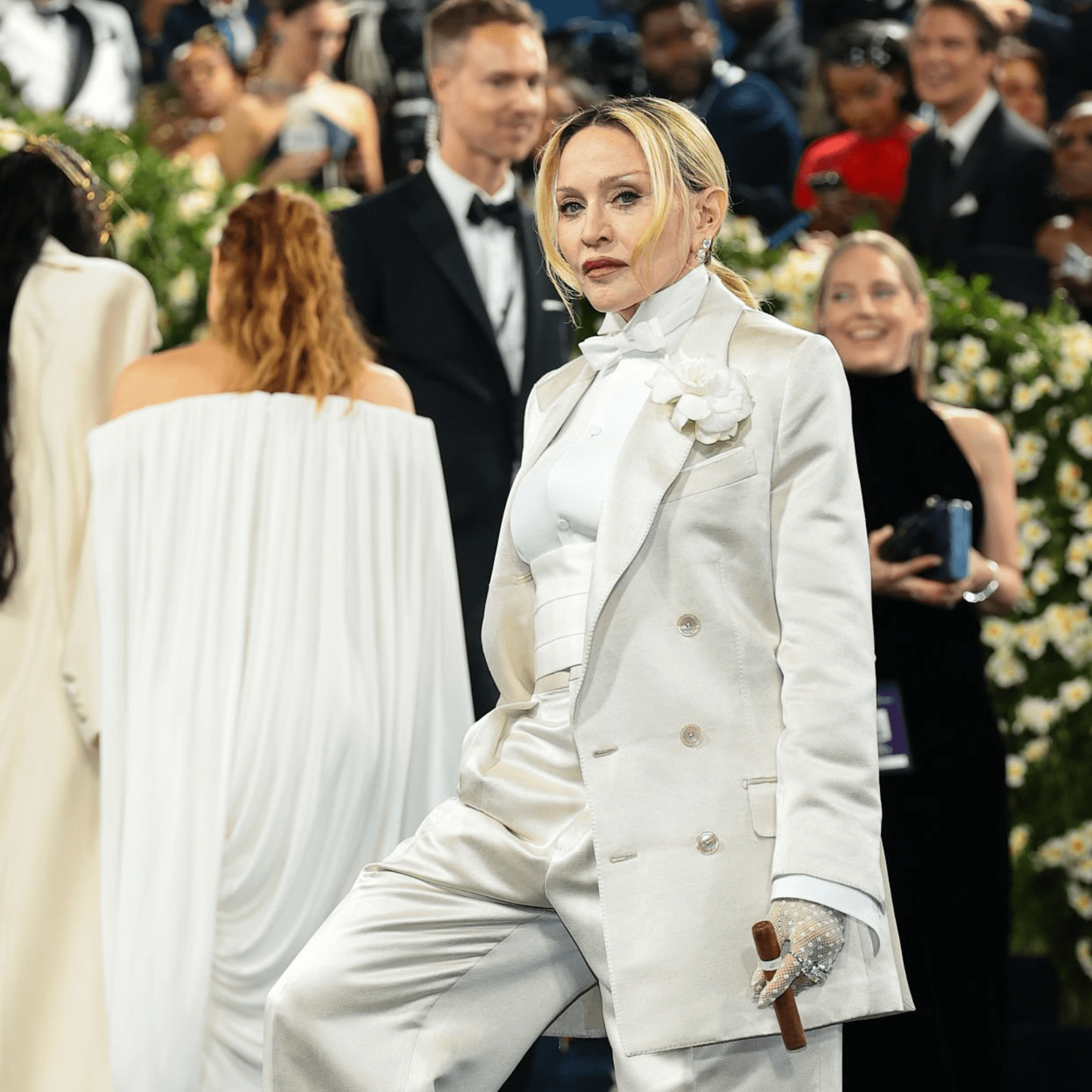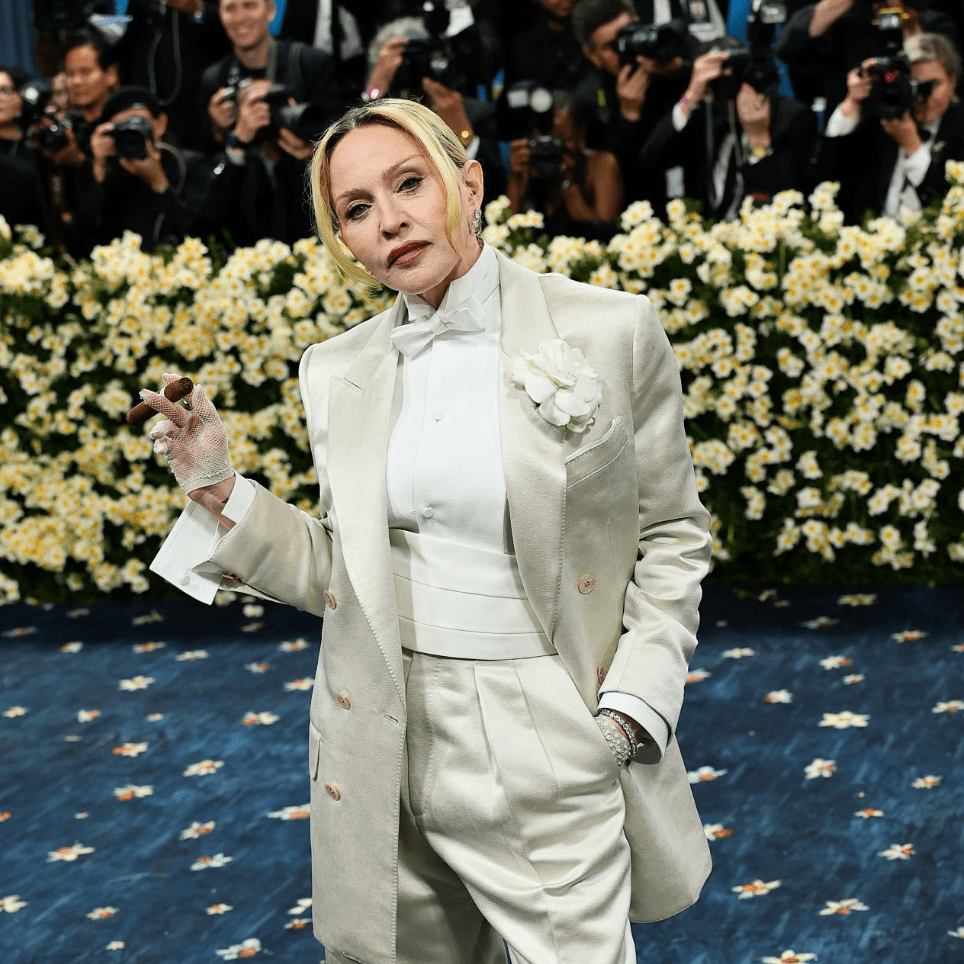 C’est le 5 mai dernier que Madonna a foulé le tapis rouge (enfin plutôt bleu) du traditionnel MET GALA au Metropolitan Museum Of Art à New York. Pour cette édition 2025, le thème était « Superfine : tailoring black style ». Et Madonna, qui était attendue après 8 ans d’absence à cet événement, n’a pas déçu en se présentant en tailleur ivoire et noeud papillon de Haider Ackerman de la maison Tom Ford.