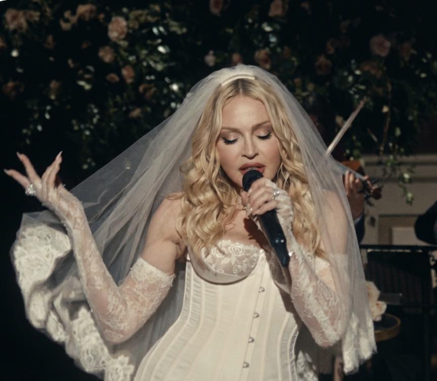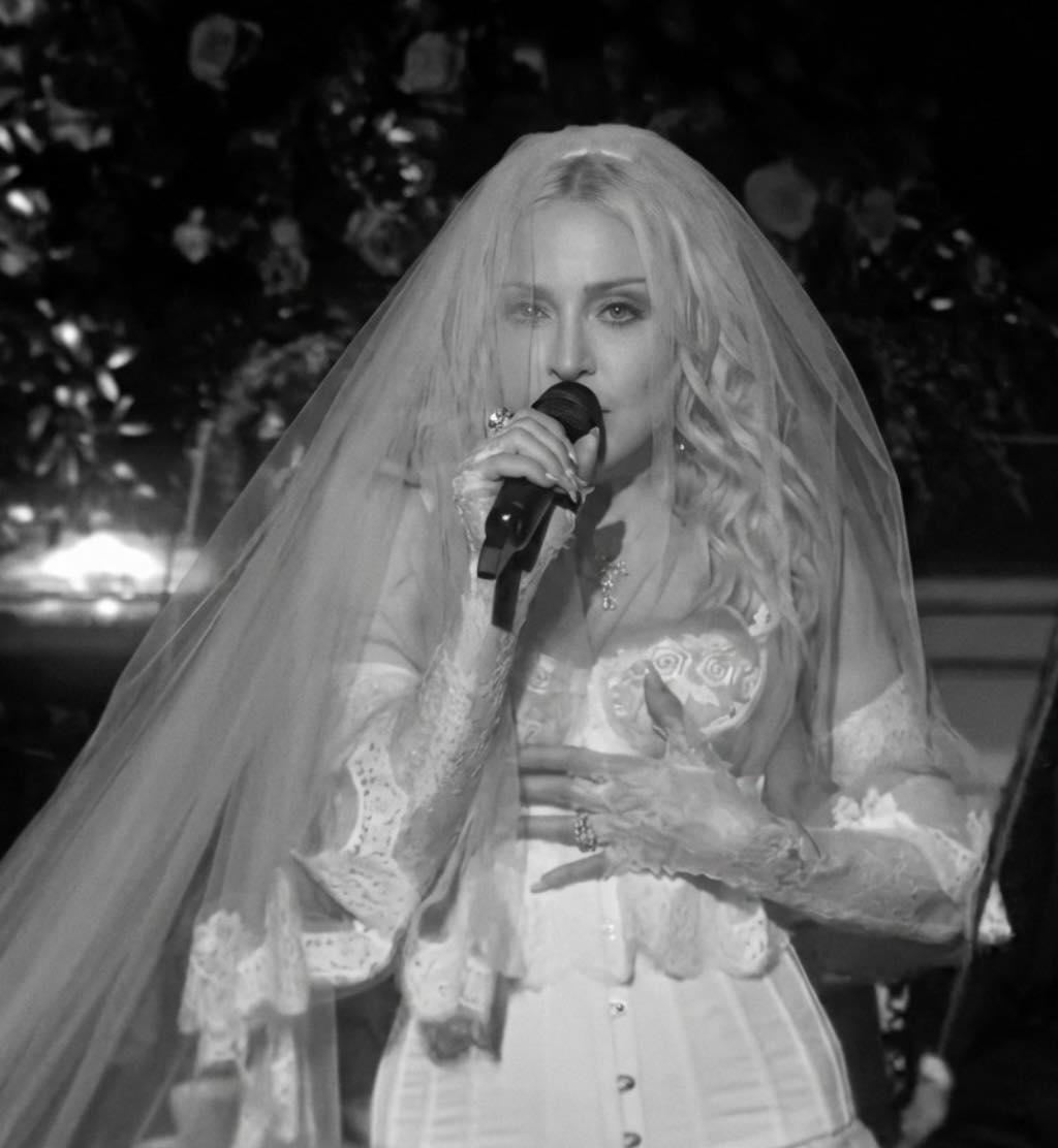 Magnifique prestation vocale d’une Madonna heureuse et rayonnante dans son corset blanc et son voile de mariée à la « Like a Virgin », titre qui aurait d’ailleurs également été interprété lors de cette prestation exclusive.