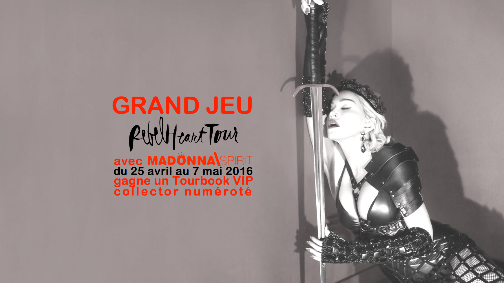 • Le premier tiré au sort gagnera 1 exemplaire collector et numéroté du TOURBOOK VIP de la tournée REBEL HEART TOUR de Madonna